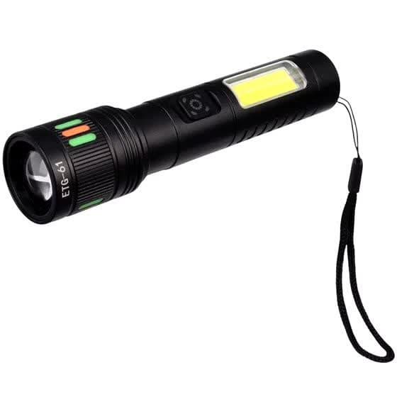 چراغ پلیسی دستی مدل ETG61 /// تامین انرژی: باتری داخلی/// قابلیت زوم: دارد ///بند: دارد