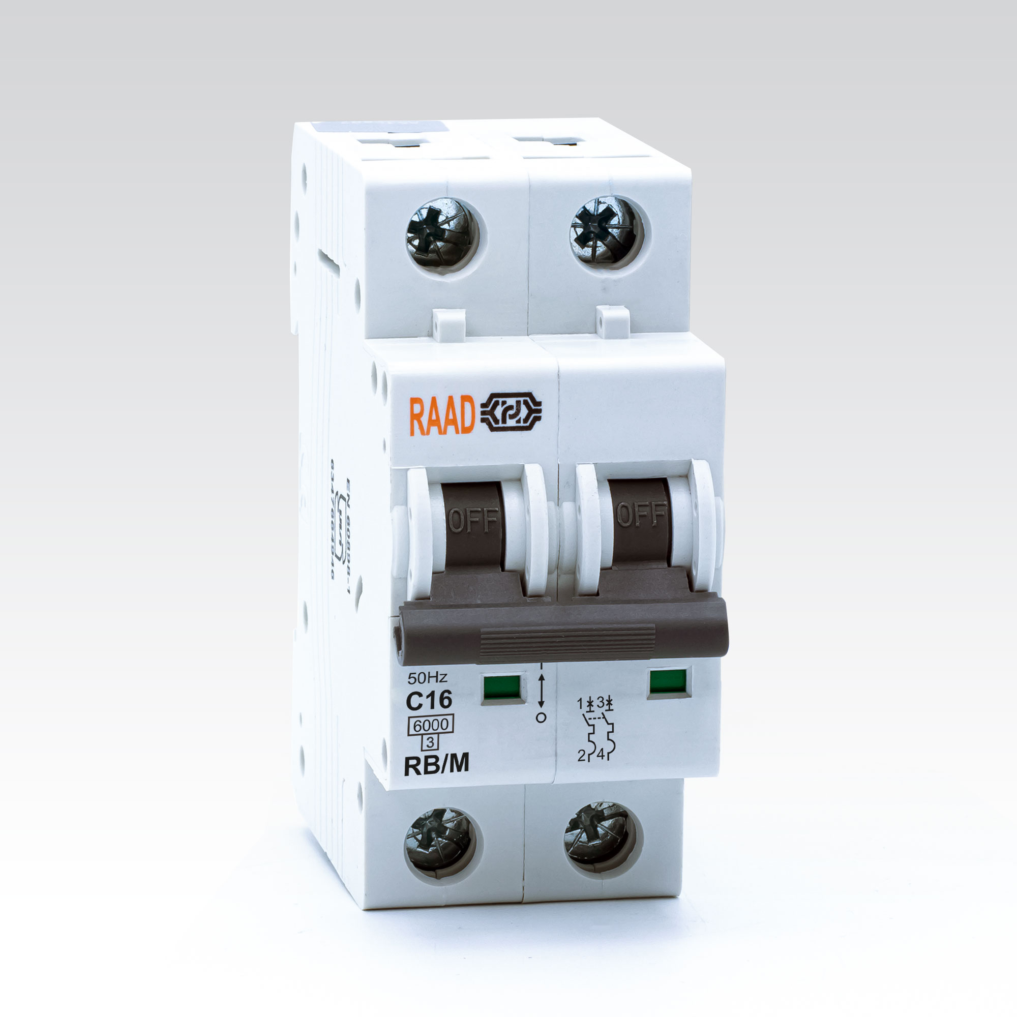 کلید مینیاتوری 2 پل 16 آمپر RB-M-2P-C16-6KA رعد، کلیدی الکترومکانیکی بوده و از نوع رنج جریان متناوب (AC) و منحنی قطع C است که این نوع، بیشتر کاربرد صنعتی داشته و زمان قطعی آن از تیپ B بیشتر است. کلید مینیاتوری به عنوان محافظت از کاربر در برابر خطای اتصال کوتاه و هم جریان اضافه بار مورد استفاده قرار میگیرد. به دلیل جریان بسیار بالایی که در هنگام وقوع اتصال کوتاه رخ میدهد، حرارت بالایی ایجاد کرده و سبب وارد شدن شوک به مدار میگردد که گاهی باعث آتش سوزی و از بین رفتن مدار و مصرف کننده میشود. به همین دلیل برای تشخیص و حفاظت از مدار جهت جدا کردن قسمت آسیب دیده از سالم از کلید مینیاتوری استفاده میشود.