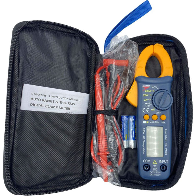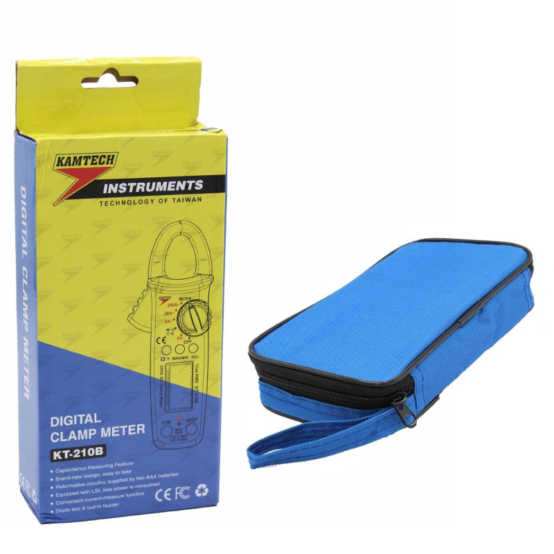 مولتی متر کلمپی کامتک مدل : KT-210B / آمپر : 1mA-200A / ولتاژ : AC / DC / خازن سنج : 2 نانو فراد تا 200 میکروفاراد / NCV : دارد / تست بیزر : دارد / تست دیود : دارد / اورلود محافظ : دارد / روشنایی صفحه : دارد / Hold : دارد / MAX/MIN : دارد / اقلام همراه : 2عدد پراب / 2 عدد باتری نیم قلمی / کیف مخصوص حمل